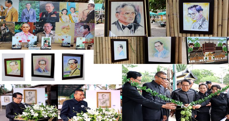 จังหวัดสมุทรสงคราม ร่วมกับ กลุ่มศิลปินทิ้งถ่วง และสมาคมประชาสัมพันธ์ไทยรวมพลังถวายความอาลัย เปิดนิทรรศการ ศิลปกรรม “น้อมรำลึกในหลวงรัชกาล ที่ ๙” บริเวณตลาดน้ำท่าคา