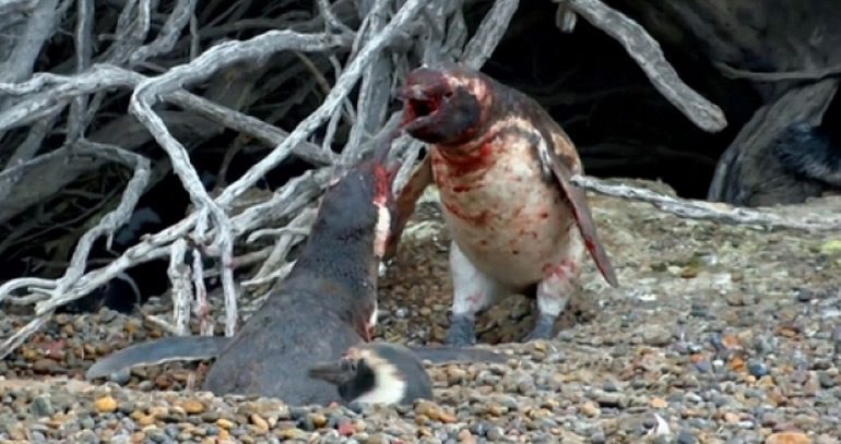 เนชั่นแนลจีโอกราฟิกเผยแพร่คลิปวิดีโอสารคดีตอนหนึ่งที่ทำให้ผู้ชมรู้สึกตกใจและสงสารเพนกวินตัวหนึ่งอย่างมากโดยเป็นเพนกวิน ตัวผู้ตัวหนึ่ง เข้าสู่ฤดูผสมพันธุ์ตั้งแต่เดือนกันยายน และขุดหลุมสร้างรังเพื่อรอลูกน้อยที่กำลังจะฟักออกมาในเดือนนี้ ซึ่งหลังจากมันกลับมาที่รังที่อยู่กับคู่รัก กลับต้องช็อกหนักเมื่อเจอภรรยาของตนอยู่กับเพนกวินตัวผู้ตัวอื่น จึงเกิดศึกชิงนางต่อสู้กันอย่างดุเดือด โดยใช้จะงอยปากและปีกที่ไม่สามารถบินได้ของมันสู้กัน