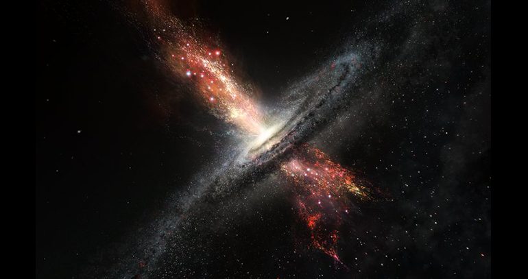 ดาวฤกษ์ที่เกิดใหม่จากเหตุนี้ อุบัติขึ้นจากกระแสลม ซึ่งมีมวลมหาศาล ที่ถูกปลดปล่อยออกมาจากหลุมดำ นับเป็นการแผ่กระจายรังสีและแก๊ส ด้วยความเร็วสูงอย่างรุนแรง จนเกิดเป็นรัศมีวงกว้าง ในการบีบอัดครั้งนี้