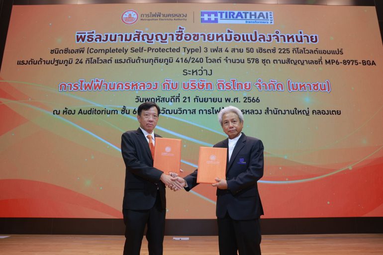 ทางด้าน นายสมชาย หอมกลิ่นแก้ว รองผู้ว่าการวางแผนและนวัตกรรมระบบไฟฟ้า การไฟฟ้านครหลวง หรือ กฟน. กล่าวว่า รู้สึกยินดีอย่างยิ่ง ที่ได้ร่วมลงนามสัญญาซื้อขายหม้อแปลงจำหน่าย ชนิดชีเอสพี (Completely Self-Protected Type) ระหว่าง การไฟฟ้านครหลวง กับ บริษัท ถิรไทย จำกัด (มหาชน) ซึ่งเป็นบริษัทของคนไทยที่สามารถผลิตหม้อแปลงไฟฟ้าได้มีคุณภาพ ซึ่ง กฟน.ในฐานะหน่วยงานที่ให้บริการจำหน่ายพลังงานไฟฟ้าในเขตพื้นที่ กรุงเทพมหานคร นนทบุรี และสมุทรปราการ เราตระหนักดีว่า ความต้องการของผู้ใช้ไฟฟ้า มีการเปลี่ยนแปลงตลอดเวลาตามวิถีชีวิตที่เปลี่ยนไป ทำให้ต้องพัฒนาระบบไฟฟ้า เสริมสร้างเสถียรภาพในระบบจำหน่ายของการไฟฟ้านครหลวง ให้สอดรับกับวิสัยทัศน์ของการไฟฟ้านครหลวงที่ว่า “พลังงานเพื่อวิถีชีวิตเมืองมหานคร”