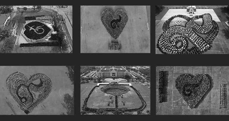 อีกหนึ่งสัญลักษณ์ที่พสกนิกรทั่วสารทิศ โดยหลายหน่วยงานทั้งภาครัฐ และเอกชน รวมใจแปรอักษรถวายความอาลัย ต่อพระบาทสมเด็จพระปรมินทรมหาภูมิพลอดุลยเดช พร้อมถวายสัตย์ปฎิญาณ ตั้งปณิธาน ทำความดี เดินตามพ่อของแผ่นดิน