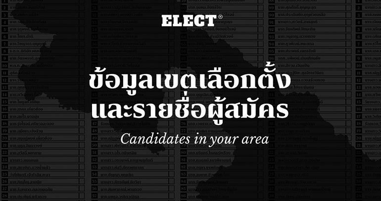 ที่นี้ก็กรอกรหัสไปรษณีย์ เพื่อดูรายชื่อผู้สมัครฯ ในเขตเลือกตั้งของท่าน ตามลิงค์นี้ครับ https://elect.in.th/candidates/