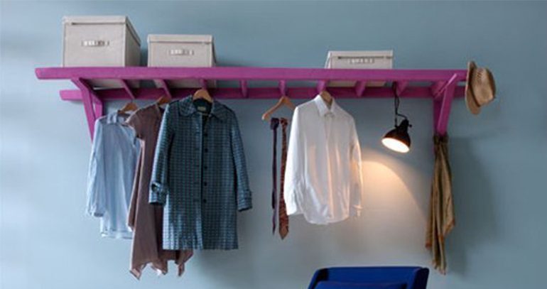 แบบที่ 1 บันไดเก่าที่ไม่ได้ใช้ น้ำมาถอดเป็นสองชิ้น แล้วแผ่นไม้ หรือ ท่อน้ำน้ำพีวีซี หรือ ท่อเหล็ก มาพาด แล้วจะผูกเชือก ตอกตะปู หรือ เจาะรูขันน็อต แล้วแต่ความถนัด
