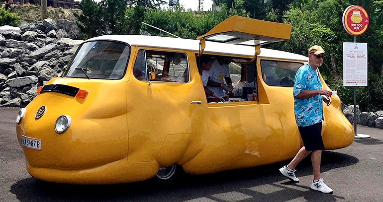 เรียกว่า ดึงดูดสายตาได้อย่างล้นหลามเลยทีเดียว สำหรับเจ้ารถตู้โฟล์คสวาเก้นคันนี้ ที่ถูกดัดแปลงตัวถังให้มีความเป็นฮอทด็อก แถมยังทำสีพิเศษขึ้นมาใหม่ ให้ออกเป็นโทนสีเหลืองเข้ม ซึ่งใครๆที่ได้พบเห็นก็รู้ทันทีว่ามันคือสีของมัสตาร์ด ทำให้รู้สึกน้ำหลายไหลที่ได้มอง รสบัสคันนี้ได้จอดในย่านบรูคลิน ส่วนพิกัดคงไม่ต้องบอกละเอียดนัก หากได้ชมภาพก็คงทราบได้อย่างทันที หรือถ้าจะสืบหาก็คงจะไม่ลำบากนัก จริงไหม?