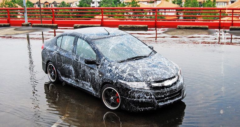 - เมื่อล้างคราบแป้งเสร็จเรียบร้อย หลังจากน้ันให้ตามด้วยแชมพูล้างรถ