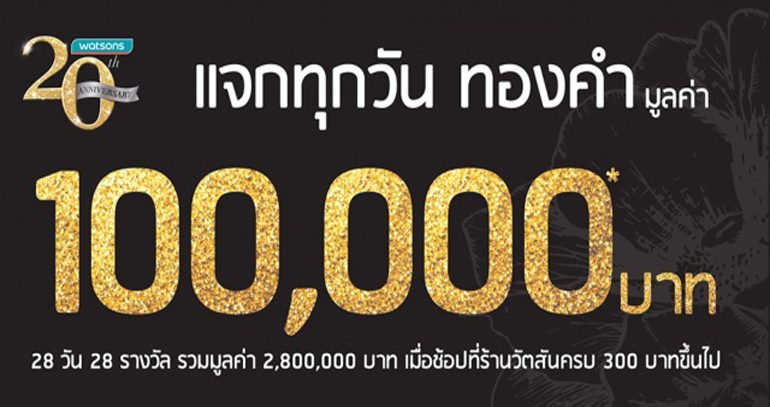 วัตสันฉลองครบรอบ 20 ปี แจกทองคำมูลค่า 100,000 บาท ทุกวัน
