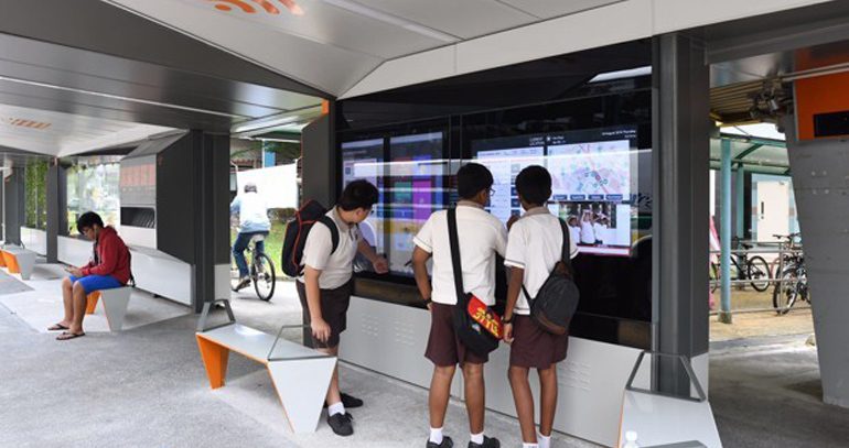 มีรายงานว่า DP Architects ร่วมมือกับรัฐบาลสิงคโปร์ ทดลองใช้ป้ายรถเมล์อัจฉริยะ ที่ดีไซน์มาเพื่ออำนวยความสะดวกแก่ผู้ใช้งานอย่างแท้จริงไม่ใช่แค่เอาไปเป็นที่หยุดรถเท่านั้น แต่ยังมีฟังก์ชั่นสารพัดประโยชน์ ทั้งมีจออินเทอแรคทีฟเพื่อดูเส้นทาง อัปเดตสภาพอากาศ รายงานข่าว แนะนำกิจกรรมที่น่าสนใจในย่านที่ป้ายรถเมล์นั้นอยู่ มีปลั๊กสำหรับชาร์ทแบตสมาร์ทโฟนฟรี มีชั่นวางหนังสือดิจิทัลให้คนสแกน QR Code เพื่อยืมหนังสือจากห้องสมุดแห่งชาติไปอ่าน นอกจากนี้ข้างป้ายรถเมล์ยังมีจุดจอดรถจักรยานด้วย