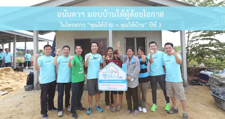 อนันดาฯ มอบบ้านให้ผู้ด้อยโอกาส ในโครงการ “คุณได้บ้าน = คุณให้บ้าน” ปีที่ 3