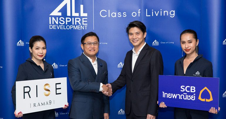 คุณธนากร ธนวริทธิ์ (ที่ 2 จากซ้าย) ประธานเจ้าหน้าที่บริหาร บริษัท ออลล์ อินสไปร์ ดีเวลลอปเม้นท์ จำกัด (มหาชน) พร้อมด้วย นาย ศิโรตม์ วิชยาภัย ผู้ช่วยผู้จัดการใหญ่ ผู้บริหารสาย Corporate Segment – Thai 3 (ที่ 2 จากขวา) ธนาคารไทยพาณิชย์ ร่วมลงนามในสัญญาให้การสนับสนุนทางการเงิน จำนวน 765 ล้านบาท เพื่อพัฒนาโครงการ ไรส์ พระราม 9 (Rise Rama9) คอนโดแนวคิดใหม่ ได้นำแนวคิดของ Co Living Space มาผสมผสานกับการอยู่อาศัยแบบคอนโดของคนเมือง ด้วยการออกแบบ Facility ต่างๆ ให้ตอบโจทย์ทั้งการทำงานและการพักผ่อนของคนรุ่นใหม่ได้อย่างลงตัวที่สุด เป็นคอนโดมิเนียม Low-Rise สูง 8 ชั้น จำนวน 4 อาคาร ทั้งหมด 652 ยูนิต บนทำเล ศักยภาพ พระราม 9 New CBD ใกล้ทางขึ้น-ลง ทางด่วนศรีรัช และทางด่วนรามอินทรา – อาจณรงค์ เชื่อมต่อการเดินทางเข้าสู่ใจกลางเมืองได้อย่างสะดวกสบายด้วยรถไฟฟ้าสายสีส้มเพียง 500 เมตร ภายใต้การบริหารงานของ บริษัท ออลล์ อินสไปร์ จำกัด (มหาชน) โดยโครงการคาดว่าจะแล้วเสร็จ ในเดือน ธันวาคม ปี 61