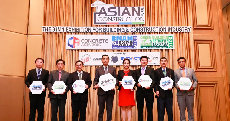 บริษัท อิมแพ็ค เอ็กซิบิชั่น แมนเนจเม้นท์ จำกัด ในฐานะผู้จัดงานแสดงสินค้า และการประชุม จัดงานแถลงข่าว ประกาศความพร้อมการจัดงานใหญ่ด้านอุตสาหกรรมก่อสร้าง “Asian Construction Week 2016” ที่รวมบริษัทด้านอุตสาหกรรมก่อสร้าง 3 งาน ไว้ในที่เดียว ได้แก่ งาน BMAM Expo Asia 2016, GBR Expo Asia 2016 และ Concrete Asia 2016 โดยภายในงานได้รับเกียรติจากผู้ทรงคุณวุฒิทั้งจากภาครัฐ และภาคเอกชนเข้าร่วมเสวนาในหัวข้อ “The Future of Building & Construction Industry in ASEAN” ได้แก่ กรมพัฒนาพลังงานทดแทนและอนุรักษ์พลังงาน กระทรวงพลังงาน, สำนักการโยธา กรุงเทพมหานคร, สมาคมคอนกรีตแห่งประเทศไทย(TCA), สถาบันการก่อสร้างแห่งประเทศไทย และบริษัทเนาวรัตน์พัฒนาการ จำกัด (มหาชน)