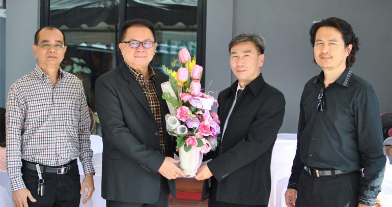 นายบุญทัณณ์ สุเมธวานิชย์ กรรมการผู้จัดการ สายงานวิศวกรรม (ที่ 2 จากขวา) และดร.พรรค ธารดำรงค์ รองกรรมการผู้จัดการฝ่ายการตลาด สายงานอสังหาริมทรัพย์ บริษัท อีเอ็มซี จำกัด (มหาชน) (ที่ 1 จากขวา) ผู้บริหารโครงการ ร่วมงานพิธีทำบุญเปิด SALES GALLERY พร้อมเปิดตัวโครงการ “สยามไอยรา รีสอร์ต” (ชลบุรี-บ้านบึง) ทาวน์โฮมพร้อมอยู่รูปแบบใหม่สไตล์โมเดิร์นบาหลี ภายใต้แนวคิด “Modern Living…Modern Bali” ตั้งอยู่ที่ถนนพานทอง-บ้านบึง ก.ม.9 ตำบลหนองบอนแดง อำเภอบ้านบึง จังหวัดชลบุรี โดยมีนายสุรสิตย์ กังวลกิจ นายกเทศมนตรีเมืองบ้านบึง (ที่ 2 จากซ้าย) พร้อมด้วยนายสมชาย เปรมประเสริฐ สมาชิกสภาเทศบาลเมืองบ้านบึง (ที่ 1 จากซ้าย) ร่วมแสดงความยินดี พร้อมกันนี้ได้มีการนำแขกผู้มีเกียรติและคณะสื่อมวลชน จังหวัดชลบุรี ร่วม เยี่ยมชมโครงการ ณ โครงการสยามไอยรา รีสอร์ต (ชลบุรี-บ้านบึง) เมื่อเร็วๆ นี้