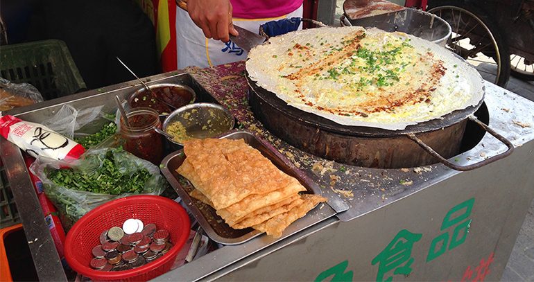 เจียนปิ่ง เป็นอาหารประเภทสตรีทฟู้ด ที่สามารถพบเห็นได้ทั่วไปตามถนนหนทาง ในเมืองจีน ซึ่งเป็นของกินหาง่าย มีหลากหลายร้าน ซึ่งแต่ละร้านนั้น ก็จะมีเอกลักษณ์ หรือ สูตรเด็ด แตกต่างกันออกไป ประมาณข้าวแกงบ้านเรา มีสิบร้าน แต่รสชาติ และ หน้าตา ไม่เหมือนกันเลยซักร้าน แต่หน้าตาของ เจียนปิ่ง จะออกทาง เปาะเปี๊ยะ เครป หรือ โรตี นะผมว่า ..คงเพราะใช้แป้งห่อคือกัน
