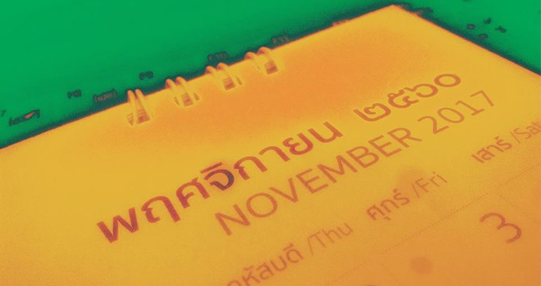 ปฏิทินเทศกาล (ไทย จีน พราหมณ์) ประจำเดือนพฤศจิกายน 2560