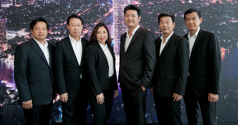 นายศรศักดิ์ สมวัฒนา ประธานเจ้าหน้าที่บริหาร บมจ.เนอวานา ไดอิ (NVD) (ที่ 3 จากขวา) พร้อมด้วย นางอลิวัสสา พัฒนถาบุตร กรรมการผู้จัดการ บริษัท ซีบีอาร์อี (ประเทศไทย) จำกัด (ที่ 3 จากซ้าย) และคณะผู้บริหารจาก บมจ.เนอวานา ไดอิ ร่วมแถลงข่าว เปิดตัวบิ๊ก โปรเจกต์ มูลค่า 6,500 ล้านบาท “บันยันทรี เรสซิเดนซ์ ริเวอร์ไซด์ กรุงเทพ” The Ultimate Luxury คอนโดมิเนียมใจกลางเมือง บนทำเลที่สวยที่สุดของ โค้งน้ำเจ้าพระยา ภายใต้แนวคิด The Sanctuary for your Soul มอบความสงบ ความเป็นส่วนสูงสุดให้แก่ผู้อยู่