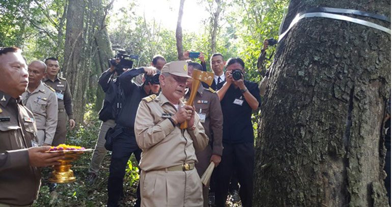 พิธีบวงสรวงตัดไม้จันทน์หอมเพื่อใช้ในงานพระบรมศพที่อุทยานฯกุยบุรี
