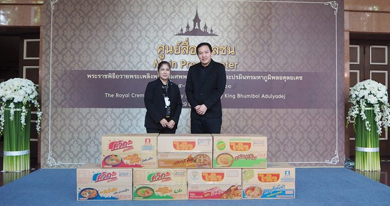 นายยศสรัล แต้มคงคา ผู้อำนวยการฝ่ายการตลาด บริษัท โรงงานผลิตภัณฑ์อาหารไทย จำกัด ผู้ผลิตและจัดจำหน่ายบะหมี่กึ่งสำเร็จรูป ภายใต้เครื่องหมายการค้า “ไวไวและควิกแสบ” ขอร่วมเป็นจิตอาสา มอบผลิตภัณฑ์บะหมี่กึ่งสำเร็จรูป ให้แก่สื่อมวลชน, ทหาร, ตำรวจ ที่ปฏิบัติหน้าที่ในงานพระราชพิธีถวายพระเพลิงพระบรมศพ พระบาทสมเด็จพระปรมินทรมหาภูมิพลอดุลยเดช บรมนาถบพิตร ในระหว่างวันที่ 25-29 ตุลาคม 2560 ณ มหาวิทยาลัยธรรมศาสตร์ ท่าพระจันทร์