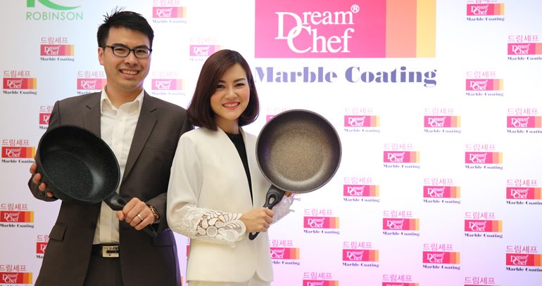 นางจารุวรรณ กนกวลีวงศ์ กรรมการผู้จัดการ และนายหรัณ กนกวลีวงศ์ ผู้อำนวยการฝ่ายการตลาด บริษัท ดรีมเชฟ (ประเทศไทย) จำกัด ในฐานะตัวแทนอย่างเป็นทางการของเครื่องครัวจากประเทศเกาหลี เปิดตัว “กระทะเคลือบหินอ่อน ดรีมเชฟ” 2 รุ่น คือรุ่น พิงค์โกลด์ หน้ากว้าง 28 ซม. ราคา 1,290 บาท ด้วยสารเคลือบถึง 10 ชั้น เพิ่มคุณสมบัติของความลื่นและทนมากกว่าเดิม ถึง 3 เท่า และ รุ่น ออริจินัล พรีเมี่ยม หน้ากว้าง 28 ซม. ราคา 990 บาท ซึ่งเป็นรุ่นที่ได้รับความนิยมมาก ด้วยเทคโนโลยีและ กระบวนการผลิตที่ทันสมัยได้มาตรฐาน การเคลือบหินอ่อนและนาโนซิลเวอร์มากถึง 10 ชั้น มีคุณสมบัติ อาหารไม่ติดกระทะ กระจายความร้อนได้เร็ว น้ำหนักเบา ใช้ได้กับเตาทุกชนิด และปลอดภัยต่อสุขภาพ 100 % ณ ห้างสรรพสินค้าโรบินสัน สาขาแฟชั่นไอส์แลนด์ เมื่อเร็วๆ นี้
