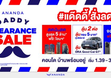 อนันดาฯ กระตุ้นตลาดอสังหาฯ ไตรมาส 4 รับรัฐบาลใหม่ จัดใหญ่ ครั้งแรก ครั้งเดียว กับ “ANANDA DADDY CLEARANCE SALE” คอนโดติดรถไฟฟ้าแต่งครบ บ้าน ทาวน์โฮม พร้อมอยู่ กับราคาที่ไม่เคยมีมาก่อน!