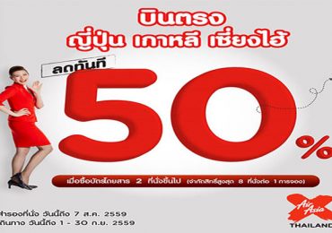 โปรโมชั่นแอร์เอเซีย บินตรง ญี่ปุ่น,เกาหลี,เซี่ยงไฮ้ ลดทันที 50% (วันนี้ – 7 ส.ค. 2559)