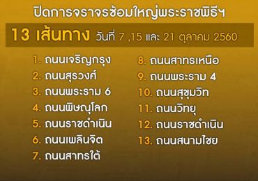 เส้นทางจราจรที่ปิดเพื่อซ้อมใหญ่มี 13เส้นทาง ในวันที่ 7, …