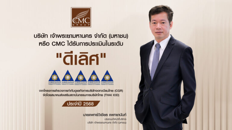 บริษัท เจ้าพระยามหานคร จำกัด (มหาชน) หรือ CMC ผู้นำด้านการพัฒนาการอยู่อาศัยคุณภาพชั้นนำของประเทศไทย ได้รับการประเมินในระดับ “ดีเลิศ (Excellent)” หรือ 5 ดาว จากโครงการสำรวจ Corporate Governance Report : CGR ประจำปี 2568 (CGR 2025) จัดโดยสมาคมส่งเสริมสถาบันกรรมการบริษัทไทย (THAI IOD) ซึ่งถือเป็นอีกหนึ่งความภาคภูมิใจขององค์กร ที่สะท้อนถึงมาตรฐานการบริหารจัดการตามหลักธรรมาภิบาลในระดับสูงสุด
