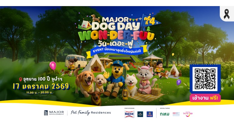 เมเจอร์ ดีเวลลอปเม้นท์ จัดยิ่งใหญ่รับต้นปี 2026 “MAJOR DOG DAY ครั้งที่ 4” เนรมิตอุทยาน 100 ปี จุฬาฯ ให้กลายเป็นแลนด์มาร์กแห่งความสุขของคนรักน้องหมากลางกรุง