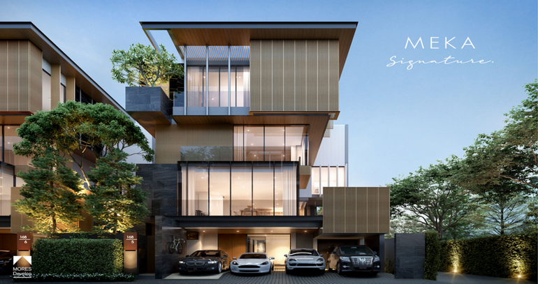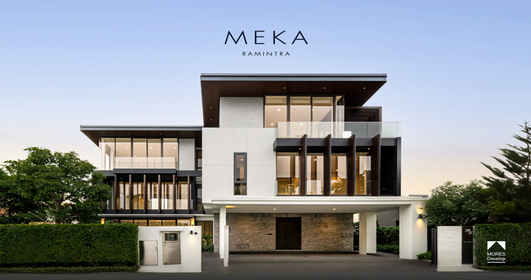 สำหรับโครงการแรกที่ พัฒนาภายใต้แบรนด์ MEKA คือ “MEKA RAMINTRA” (เมฆา รามอินทรา) คอนเซ็ปต์ “THE PRIDE FOR ENDLESS PLEASURE” บนที่ดินกว่า 6 ไร่ ติดถนนเลียบวงแหวนกาญจนาภิเษก ใกล้ทางด่วนและห้างสรรพสินค้า เดินทางสะดวกสบายเพียง 6 นาที ถึงรถไฟฟ้าสายสีชมพู สถานีรามอินทรา 83 มีจำนวน 23 ยูนิต เป็นบ้านเดี่ยว 3 ชั้น สไตล์ Modern Luxury บนเนื้อที่ 60-100 ตร.ว. พื้นที่ใช้สอย ขนาด 360-475 ตร.ม. ฟังก์ชัน 4-5 ห้องนอน ที่จอดรถ 3 คัน ราคา 18-60 ล้านบาท* เปิดขายครั้งแรกช่วงปี 2565 ภายใน 3 เดือนแรกทำยอดขายได้แล้ว กว่า 50% ปัจจุบันเหลือขายเพียง 5 หลังสุดท้าย และอยู่ระหว่างขั้นตอนการโอนกรรมสิทธิ์อีก 2 หลัง