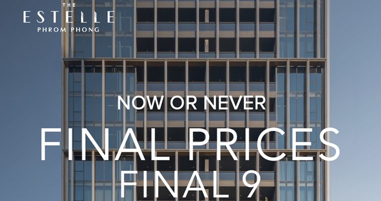 โอกาสสุดท้ายที่ห้ามปล่อยหลุดมือ กับแคมเปญแรง ‘THE FINAL PRICES. THE FINAL 9.’ ที่ ‘ดิ เอสเทลล์ พร้อมพงษ์’ คอนโดมิเนียมอัลตร้าลักชัวรี่ พร้อมเข้าอยู่ (The Estelle Phrom Phong) จาก RML (บริษัท ไรมอน แลนด์ จำกัด มหาชน) กับ 9 ยูนิตสุดท้าย ที่มาพร้อมราคาสุดพิเศษแบบที่ไม่เคยนำเสนอที่ไหนมาก่อน เริ่มต้นเพียง 256,000 บาทต่อตารางเมตร*