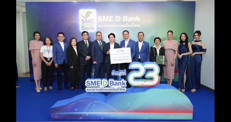 นางสาวนารถนารี รัฐปัตย์ กรรมการผู้จัดการ บริษัท บริหารสินทรัพย์สุขุมวิท จำกัด (บสส.) หรือ SAM พร้อมคณะผู้บริหารระดับสูง ร่วมแสดงความยินดีกับนายเขมชาติ อภิรัชตานนท์ รองกรรมการผู้จัดการ SME D Bank เนื่องในโอกาส “วันสถาปนาธนาคารพัฒนาวิสาหกิจขนาดกลางและขนาดย่อมแห่งประเทศไทย (SME D Bank) ก้าวสู่ปีที่ 23” พร้อมกันนี้ ยังได้ร่วมบริจาคเงินเพื่อสาธารณกุศลให้กับ “สถาบันประสาทวิทยา” สถาบันเฉพาะทางด้านโรคระบบประสาท สังกัดกรมการแพทย์ กระทรวงสาธารณสุข