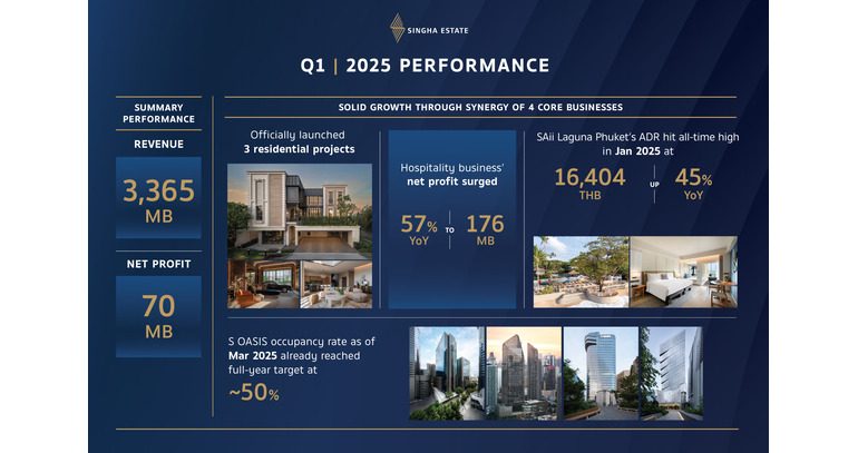 กรุงเทพฯ (15 พฤษภาคม 2568) – บริษัท สิงห์ เอสเตท จำกัด (มหาชน) หรือ (SET: S) ประกาศผลการดำเนินงานประจำไตรมาส 1 ปี 2568 มีรายได้หลักจากการดำเนินงานรวม 3,365 ล้านบาท แบ่งเป็นสัดส่วนรายได้ประจำ (Recurring Income) จากธุรกิจโรงแรมและอาคารสำนักงานที่ประมาณร้อยละ 87 และรายได้ไม่ประจำ (Non-Recurring Income) จากธุรกิจที่พักอาศัยที่ร้อยละ 13 ตอกย้ำกลยุทธ์การดำเนินงานในทิศทางที่มั่นคง มีกระแสเงินสดต่อเนื่อง โดยเฉพาะในภาวะเศรษฐกิจที่มีความไม่แน่นอนสูงในโลกปัจจุบัน