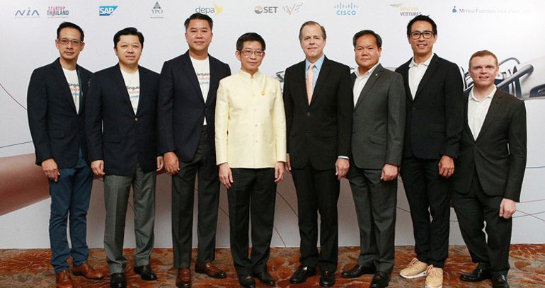 ดร.กอบศักดิ์ ภูตระกูล (ที่ 4 จากซ้าย) รัฐมนตรีประจำสำนักนายกรัฐมนตรี ให้เกียรติเป็นประธานเปิดงานสัมมนา SingularityU Thailand Summit 2018 สุดยอดสัมมนาด้านนวัตกรรมระดับโลกครั้งแรกในภูมิ ภาคเอเชียตะวันออกเฉียงใต้ จัดโดย บริษัท เอกซ์โพเนนเชียลวิสาหกิจเพื่อสังคมจำกัด องค์กรที่มีจุดมุ่งหมายเพื่อผลักดันศักยภาพของประเทศไทยสู่การเติบโตและก้าวข้ามรูปแบบระบบเศรษฐกิจและการ พัฒนาด้านสังคมในปัจจุบันเพื่อค้นหาโอกาสในการนำเทคโนโลยีแบบก้าวกระโดดเข้าสู่ภาคอุตสาหกรรมเศรษฐกิจโลก และชีวิตประจำวัน งานสัมมนาฯ ครั้งนี้เป็นการรวบรวมกลุ่มผู้บริหารทั้งจากทางภาครัฐและผู้นำจากภาคอุตสาหกรรมต่างๆ เพื่อร่วมรับฟังผู้เชี่ยวชาญระดับโลกเกี่ยวกับเทคโนโลยีแบบก้าวกระโดดเกี่ยวกับความสำเร็จและความก้าวหน้าทางด้านเทคโนโลยีในปัจจุบันที่จะสามารถนำไปปรับใช้กับความท้า ทายที่อาจเกิดขึ้นในอนาคต